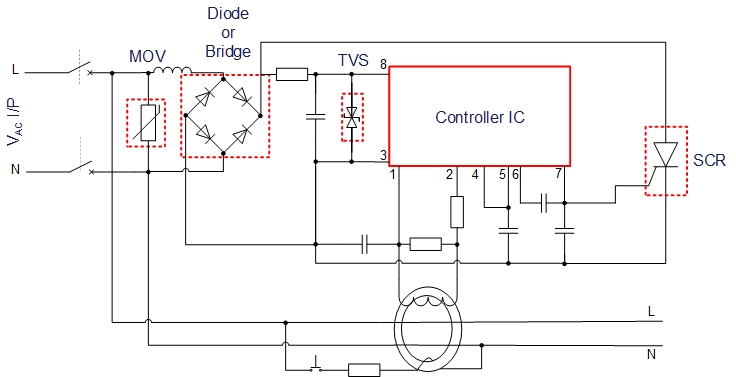 漏电保护器,简称漏电开关,又叫漏电断路器,主要是用来在设备发生漏电故障时以及对有致命危险的人身触电保护,具有过载和短路保护功能,可用来保护线路或负载的过载和短路,亦可在正常情况下作为线路的不频繁转换启动之用。 目前市场上使用的漏电保护装置种类繁多,但大体的原理都相差不大。漏电保护器主要是由三部分组成:检测元件、中间放大环节、操作执行机构 1. 检测元件:由电流互感器组成,检测漏电电流并发出信号 2. 放大环节:将微弱的漏电信号放大,按装置不同可采用机械式或电子式 3. 执行机构:收到信号可控硅由断开状态变为导通状态,主线圈通电后,主开关由闭合状态转换为断开状态,从而切断电源 应用于漏电保护器领域,ok138太阳集团微电 能提供比较齐全的元件解决方案。比如:AC 输入端防浪涌的压敏电阻(MOV)、对交流进行整流的高压整流二极管 (Diode) 或者是整流桥(Bridge)、对电源端进行过压防护的瞬态抑制二极管(TVS)、整个电路的控制核心集成电路(IC)、电路动作执行机构(SCR)等。